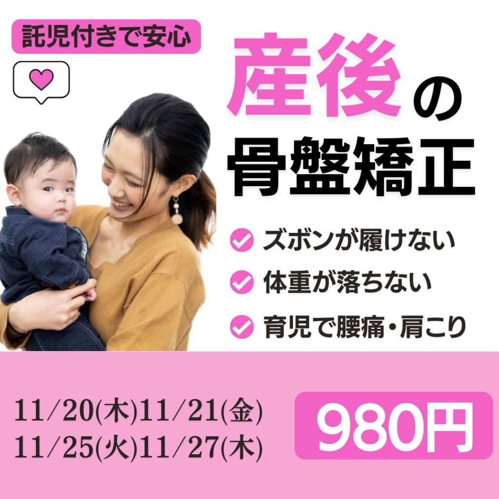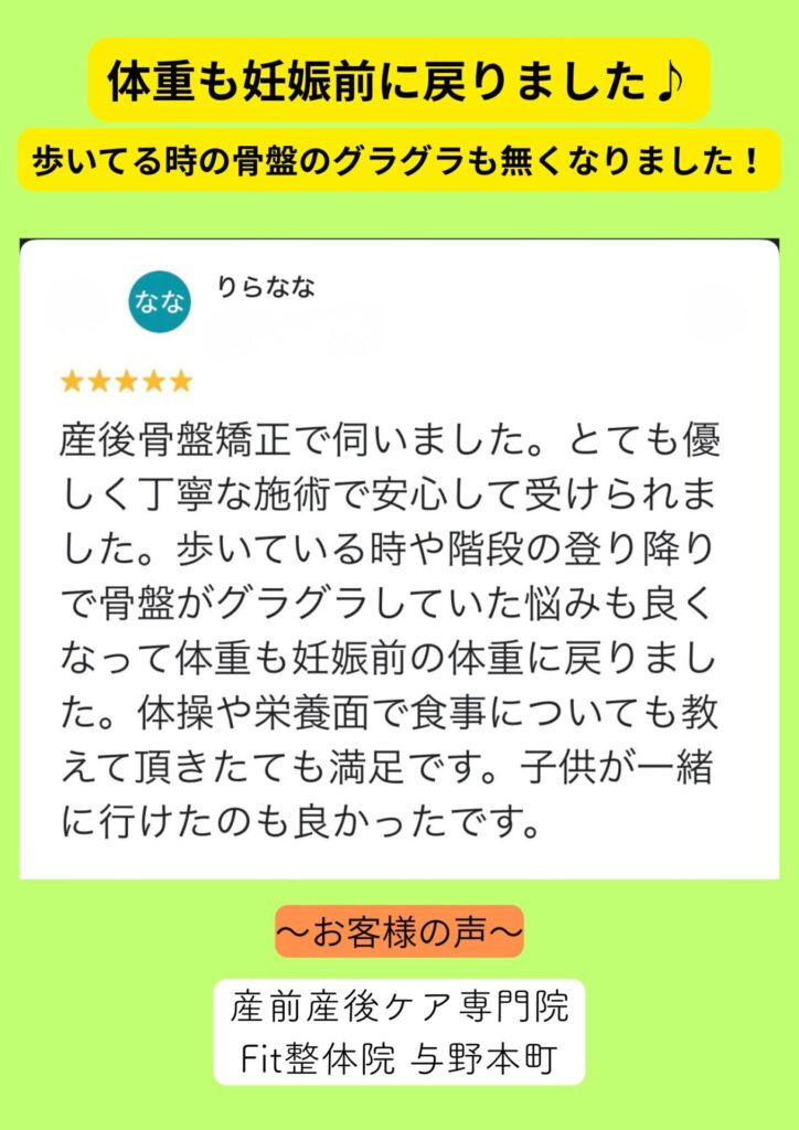 産後の悩みである骨盤の歪み、体型の変化、体の痛みや不調を解決します。