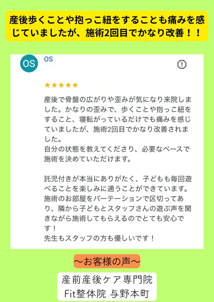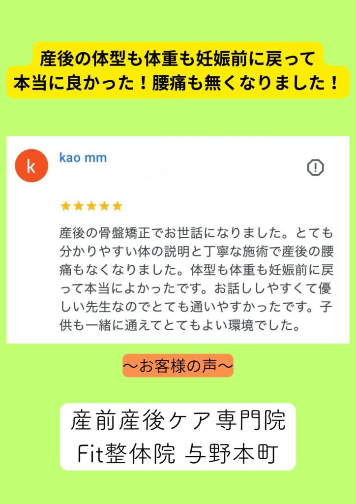 産後1年以上の方でも十分効果はありますので、ぜひご相談ください。当院では産後4年までとしております。2年以内であれば骨盤も矯正しやすく綺麗に改善が可能です。