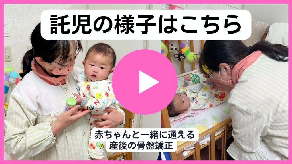 当院は無料託児付きです。いつでも赤ちゃん連れで大丈夫です。当院は個室スタイルでマンツーマンです。キッズスペース、ベビースペースもあるので、他のお客様を気にせずに安心して産後の骨盤矯正やマタニティ整体が受られます。