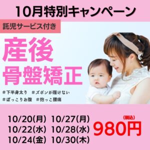 10月定休日と託児可能な日時【産後の骨盤矯正・与野本町・託児付き】
